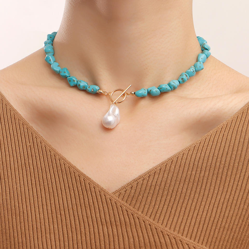 European and American Cross-Border Jewelry Natural Turquoise Irregular Pearl Pendant for Women Handmade Personalized Necklace
