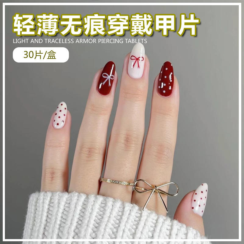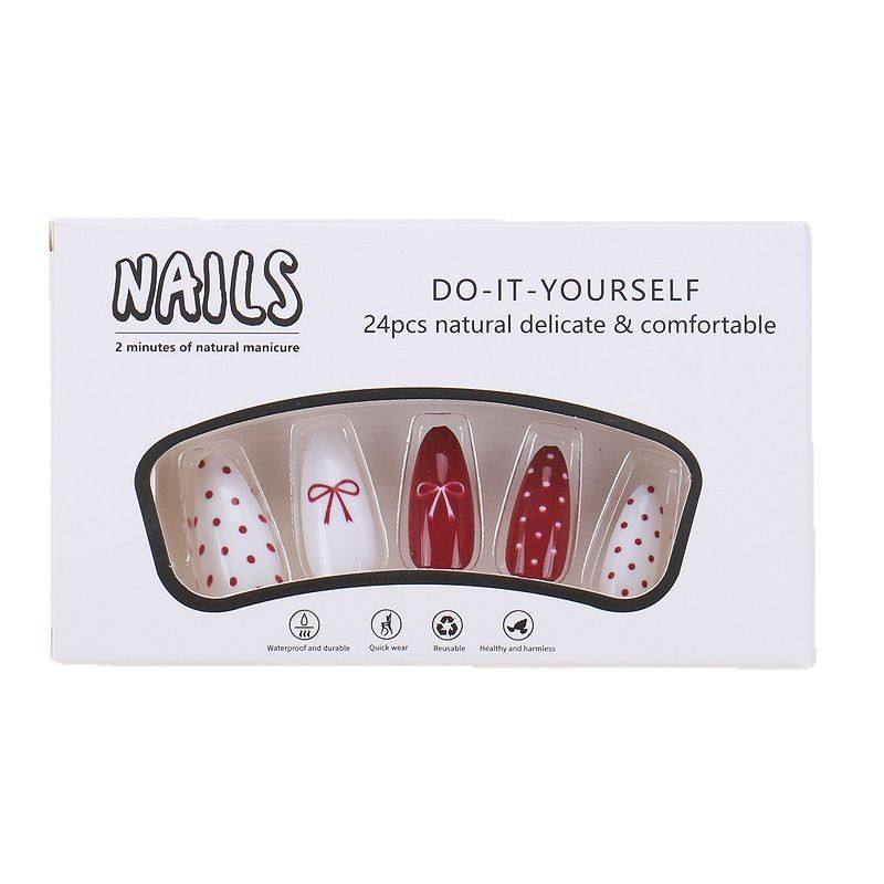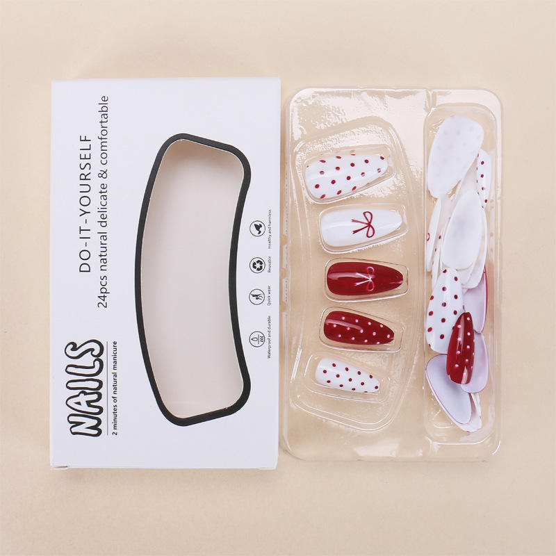 European and American Hot-Selling Nails Red Polka Dot Bow Tie Finished Products Cross-Border Hot Girl Wearable Export Nail Tips