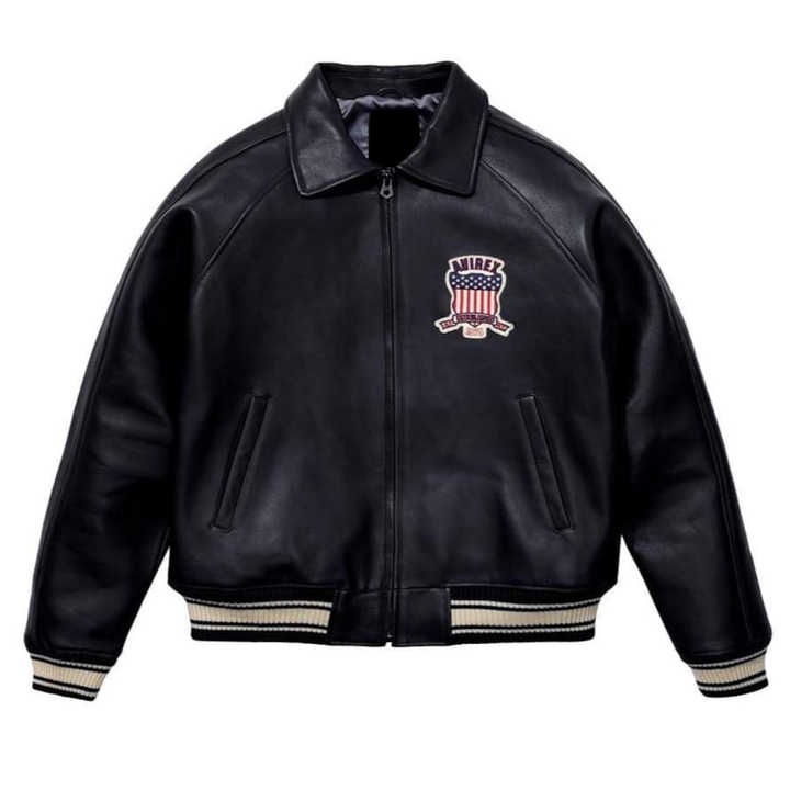 European and American Men's PU Avirex Black Jacket For Men Teenagers Standing Collar With Zipper Genuine Leather Jacket For Men