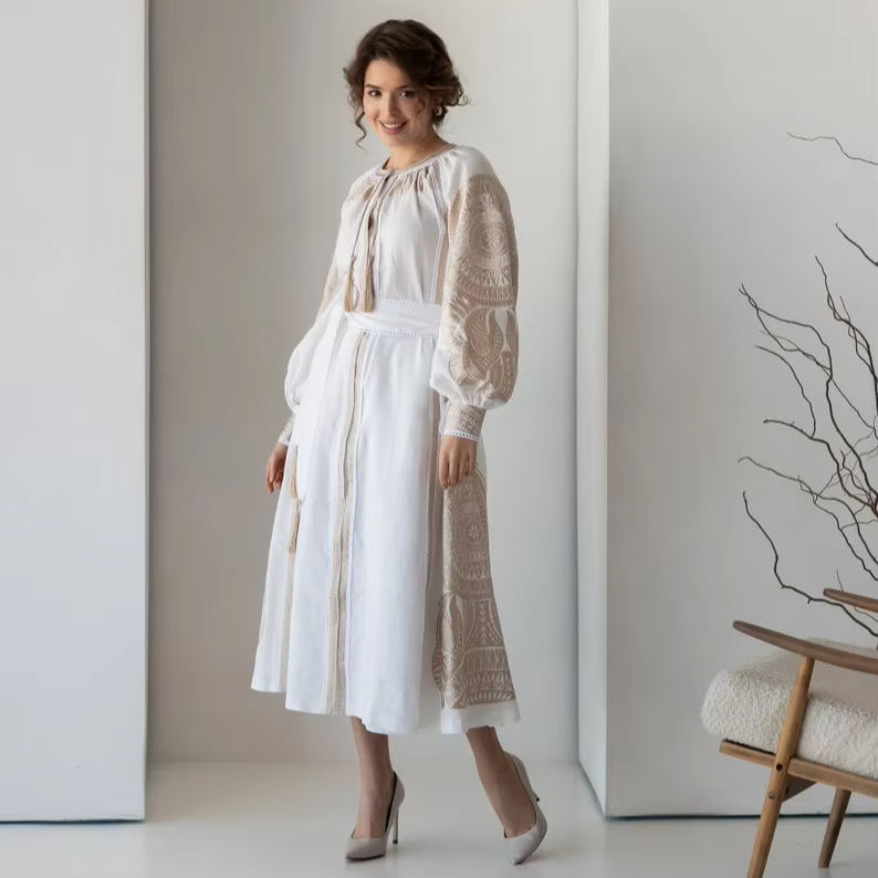 European American New Women's 3D Flower Digital Printing Woven Fabric Natural Waist Fashion Embroidery Wrap Hip Sexy Maxi Dress