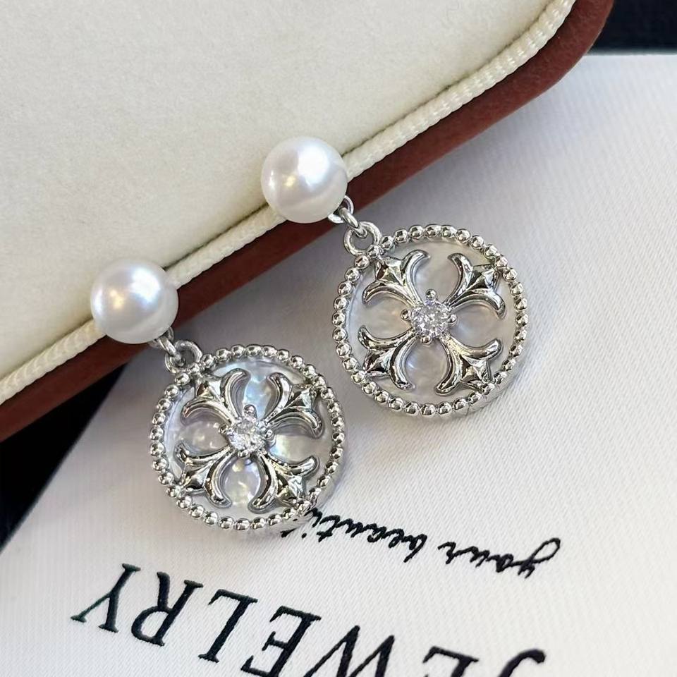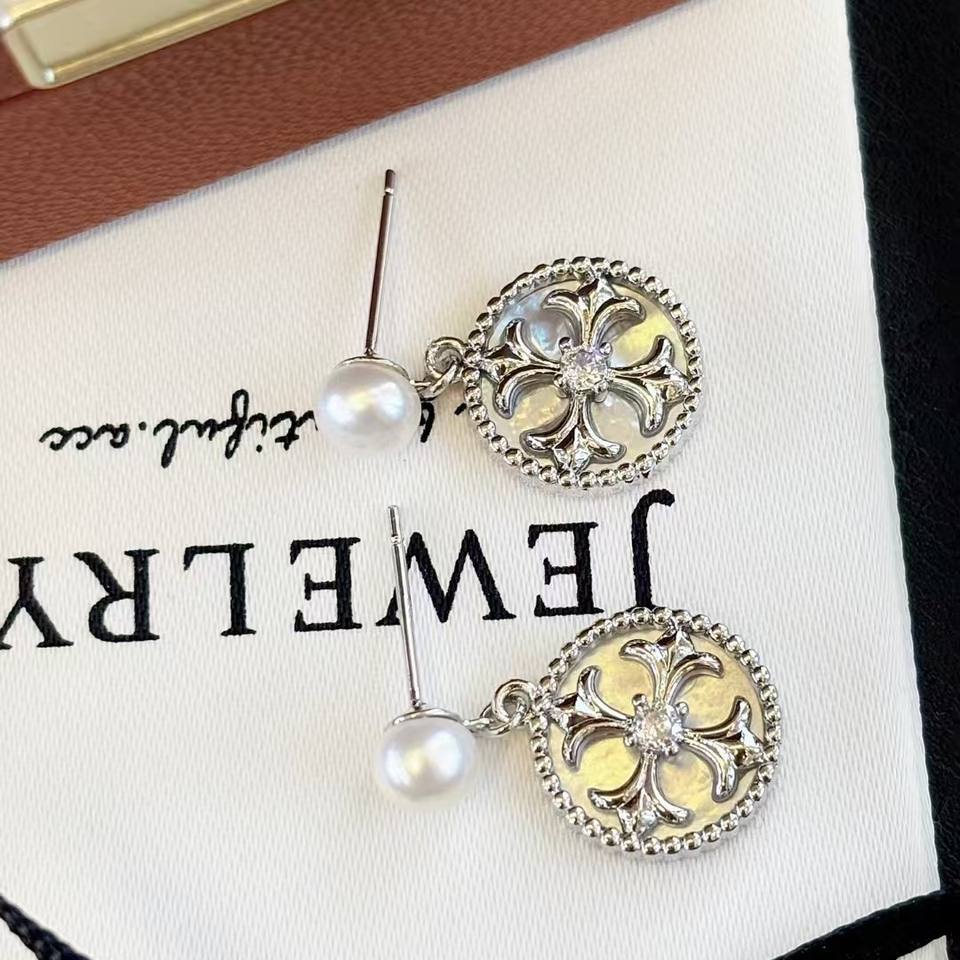 European and American Retro Palace Style Freshwater Pearl Earrings Western-Style Fine Dangle Beads Jewelry