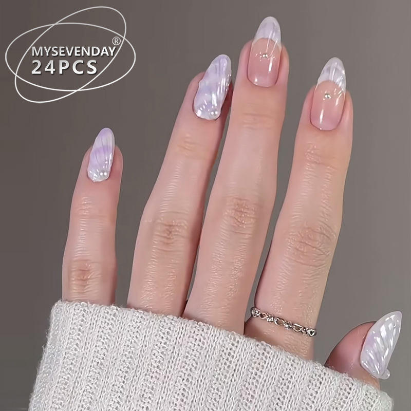 European and American Wearable Wholesale Nude Color Glitter 3D Shell Pattern Ocean Style Nail Tips Removable Fake Nails
