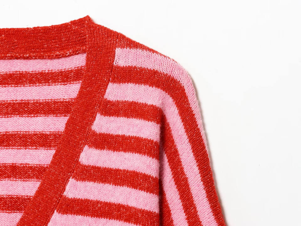 European and American Women's New Fashion Winter All-match V-neck Long-sleeved Appliques Solid Loose Knitted Cardigan Sweater