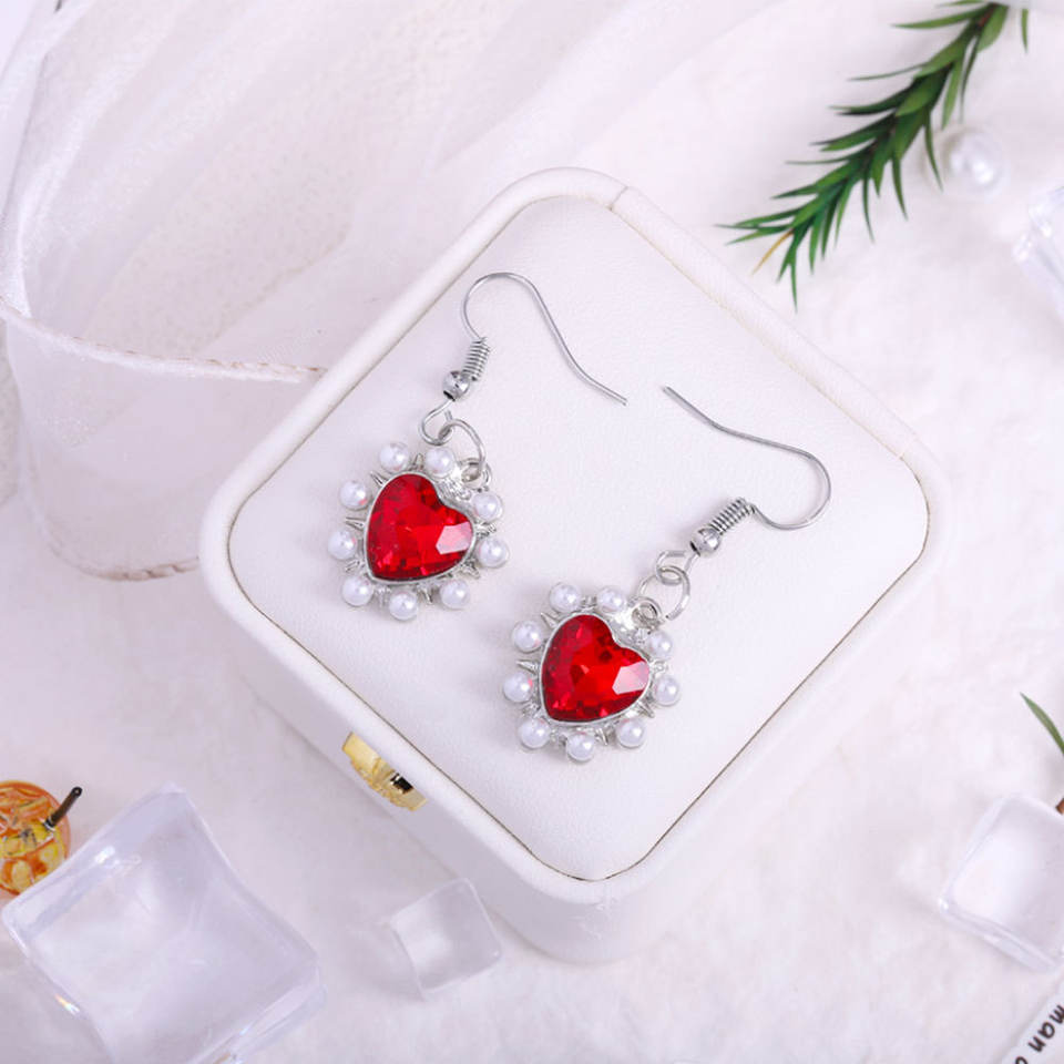 European and American fashion drop earrings featuring heart shaped including alloy stud and rhinestone studded ear jewelry