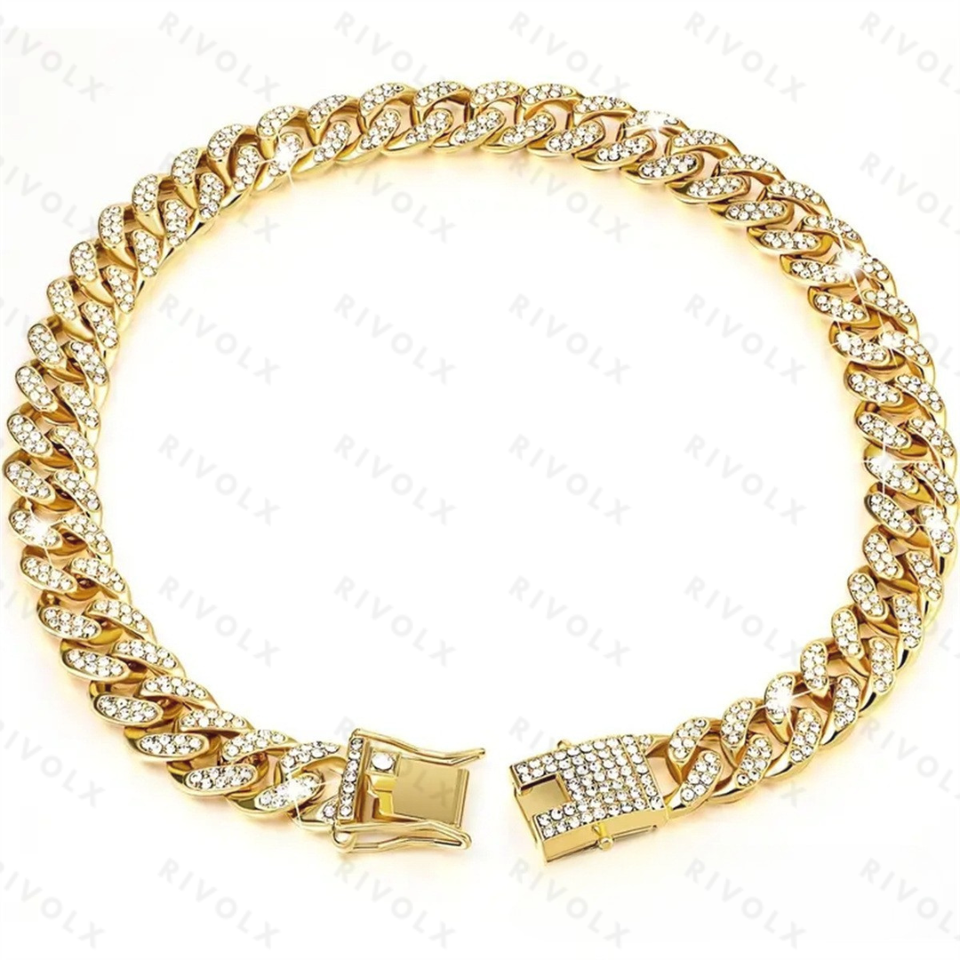 European and American hip-hop pet dog collar Cuban chain dog chain full diamond necklace lock buckle gold silver