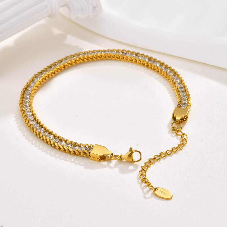 European and American style women's fashion, stainless steel zircon grinding chain gold anklet, summer foot jewelry wholesale