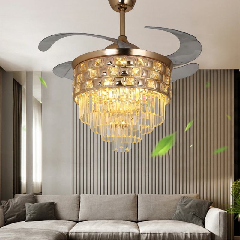 European luxury crystal chandelier used for home bedrooms, living rooms, ceiling fans, 42 inch remote control