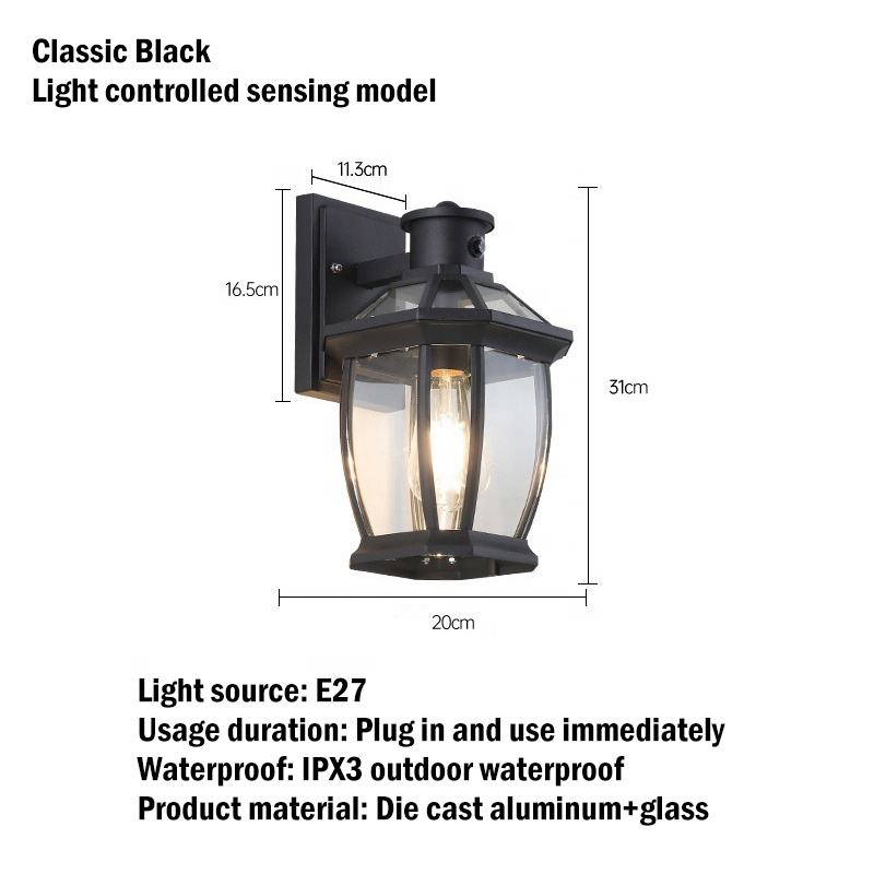 European style LED outdoor wall mounted black IP65 waterproof wall lamp used for villa, garden, rural and pastoral wall lamps