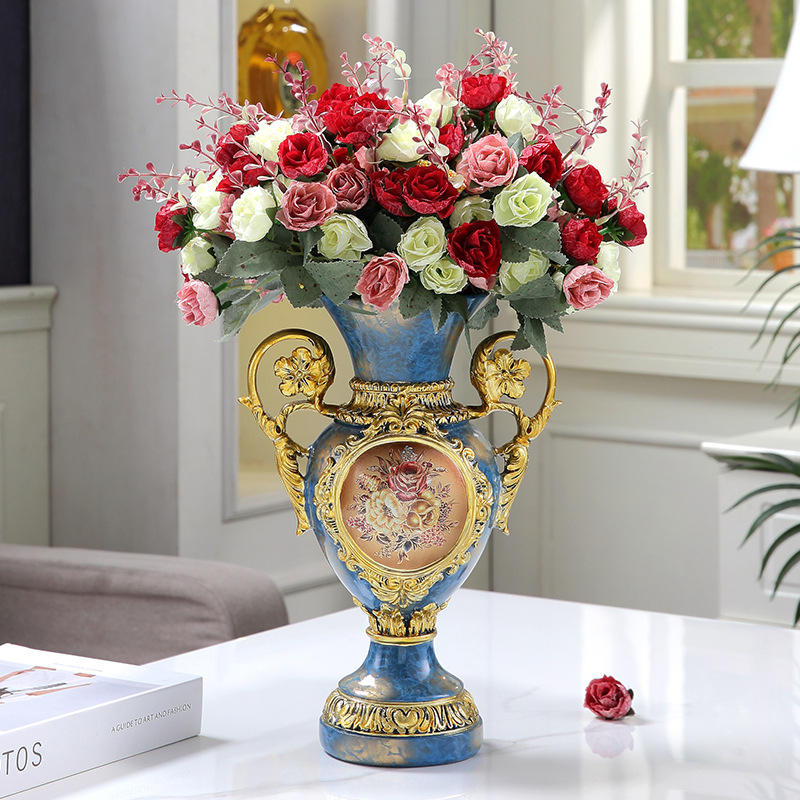 European vase ornament, living room flower arrangement, home wedding decoration, simulated flower handicrafts