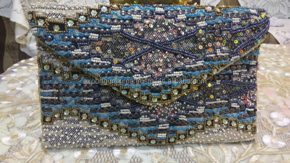 Evening Bohemian Style PVC Clutch Bag for Women Zipper Closure Daily Use Messenger Beads Envelope Design India Ethnic Collection