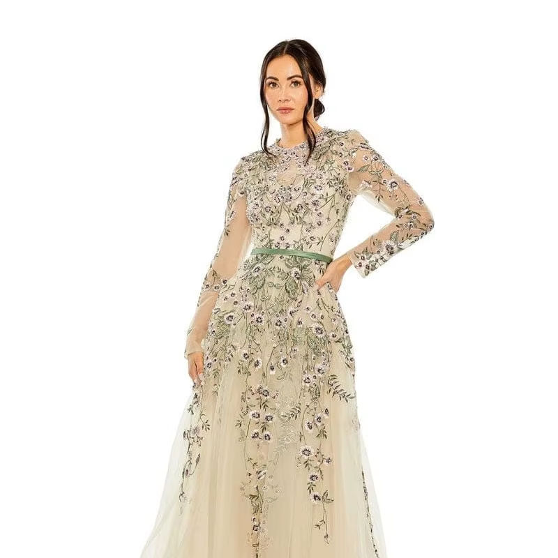 Evening Gown Solid Beaded Handwork and Embroidered Technique A-Line Prom Dress Made of Crepe Eco-Friendly for Parties