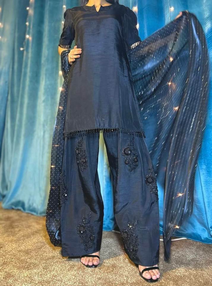 Evening Night Party Special Black Color Embroidery sequins work, mirror accents finishing complements lightweight Salwar Suit