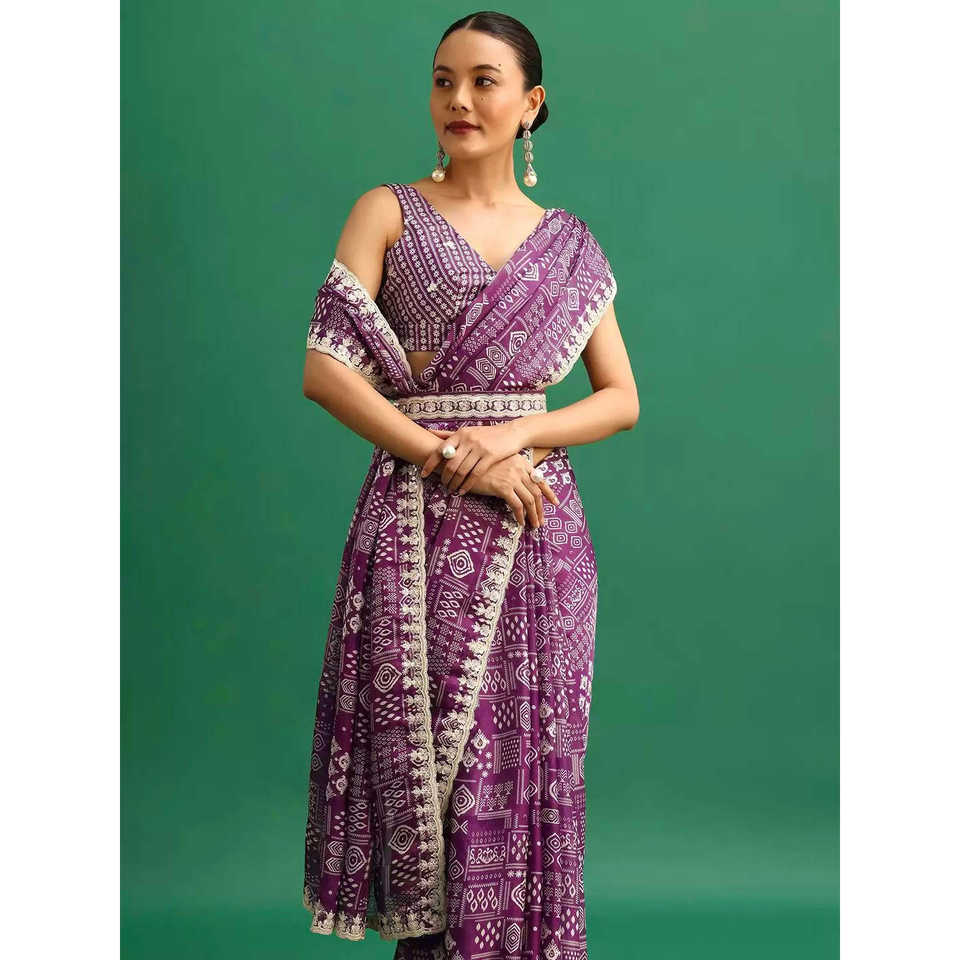 Evening Party Wear Saree with Embroidery & Sequins Work