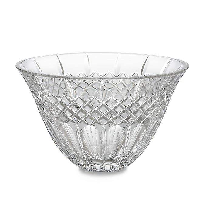 Event ready clear glass serving bowl with polished clarity and stylish design crafted for receptions or banquets