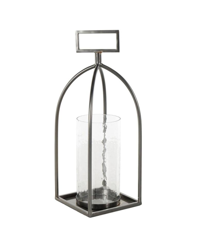 Event ready iron candle lantern with wide candle area and ornamental latch ideal for wedding or party settings