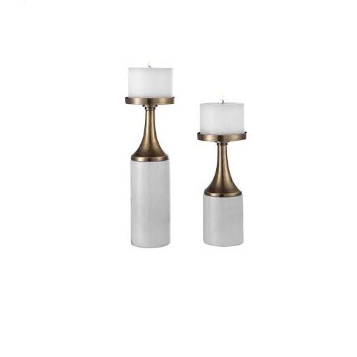 Events and Party Celebration Dinner Table Decoration Candle Stand Metal & Black Marble Candle Holder With Glass Tableware