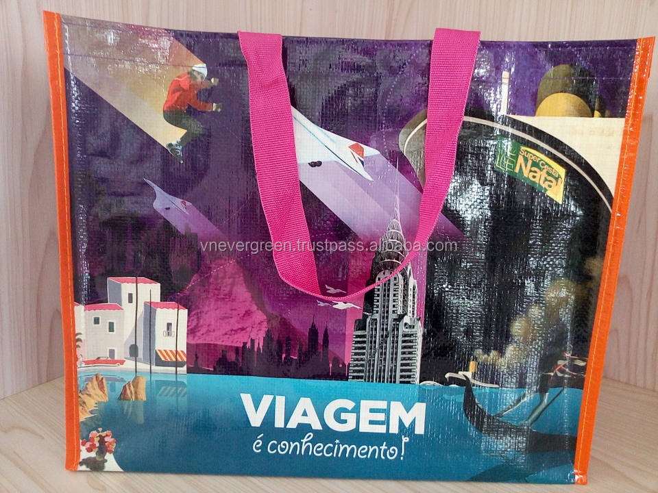 Evergreen Cheap PP Woven Tote Bag with Gravure Printing Letter Pattern Medium Size Handled-Customized Design From Vietnam