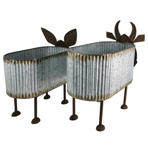 Evergreen Corrugated Modern Farmhouse Planter Small Large Decorative Iron Planters Hanging Floor Galvanized Garden Supplies