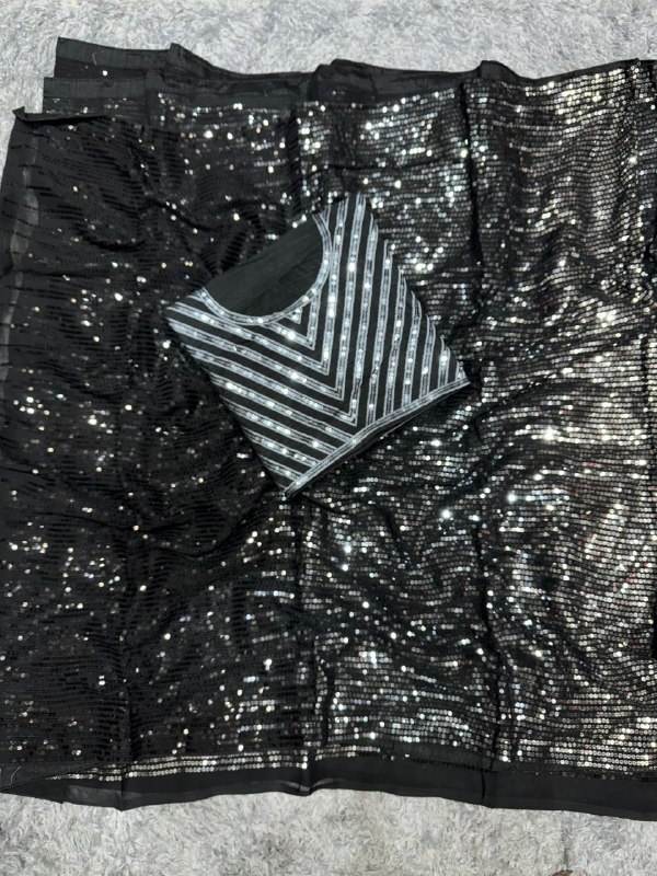 Product Name:Evergreen Design Heavy Georgette With Sequence Embroidery Work Saree
