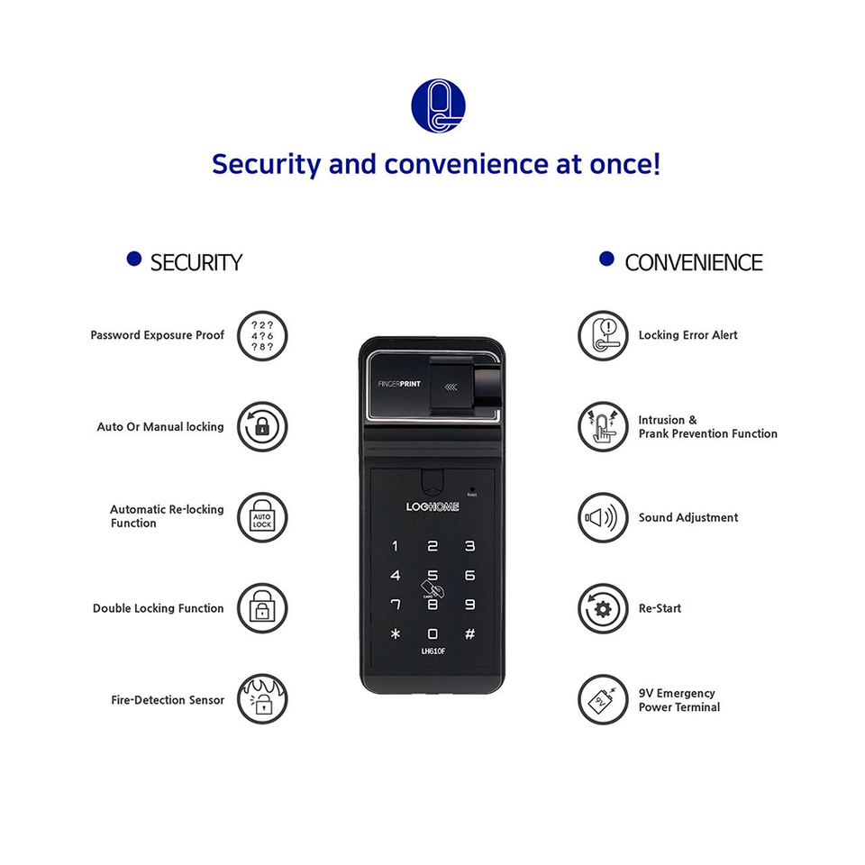 Unlock way:Fingerprint + Password + Card + Key
