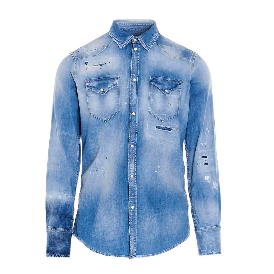 Everyday Blue Cotton Denim Breathable Long Sleeve Washed Button Up Men's Shirts Regular Fit