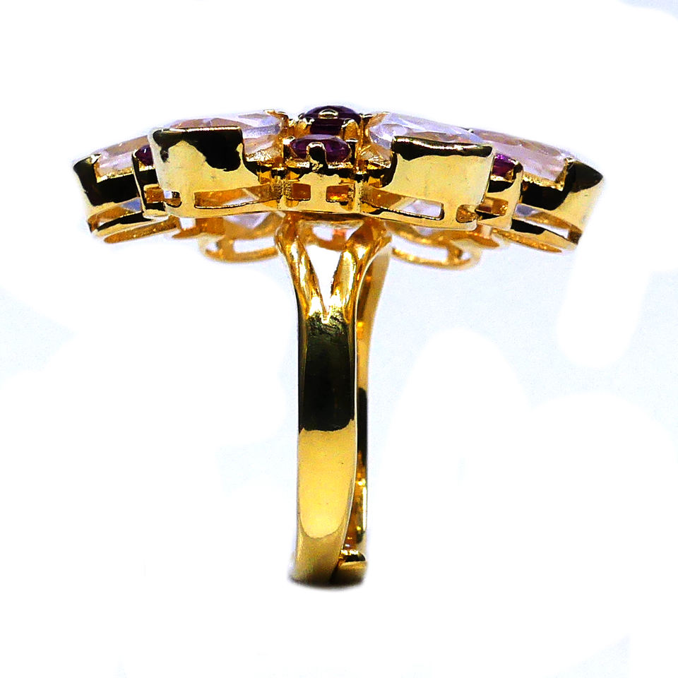 Everyday Wear 925 Sterling Silver Gold Plated Jewelry Rose Quartz Gemstone Women Wear Trendy Ring