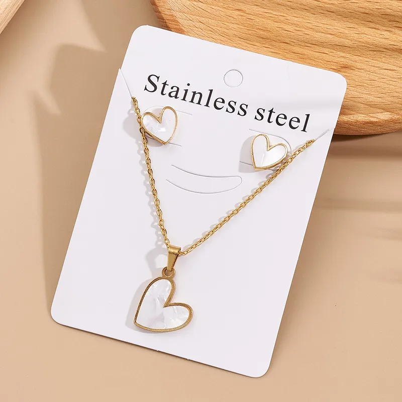 Everyday Wear Beautiful Cat Eye Stone Heart Pendant Earrings Necklace Set Stainless Steel Fashion-Plated Shell Wedding Parties