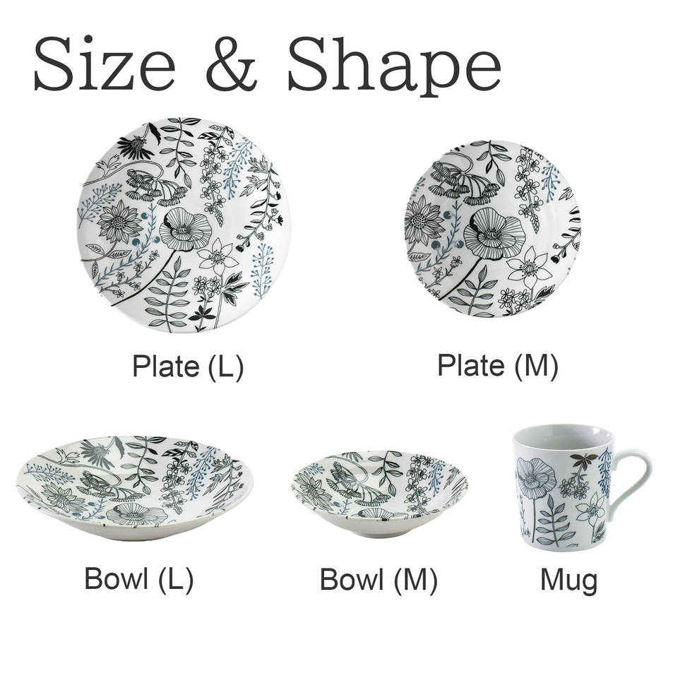 Everyday Life Add Color Flower Pattern Porcelain Plate Bowl Mug 2-Piece Dinner Set Made in Japan