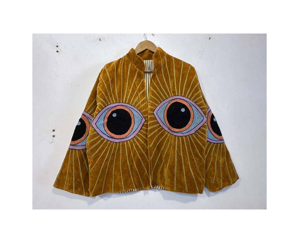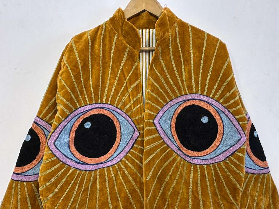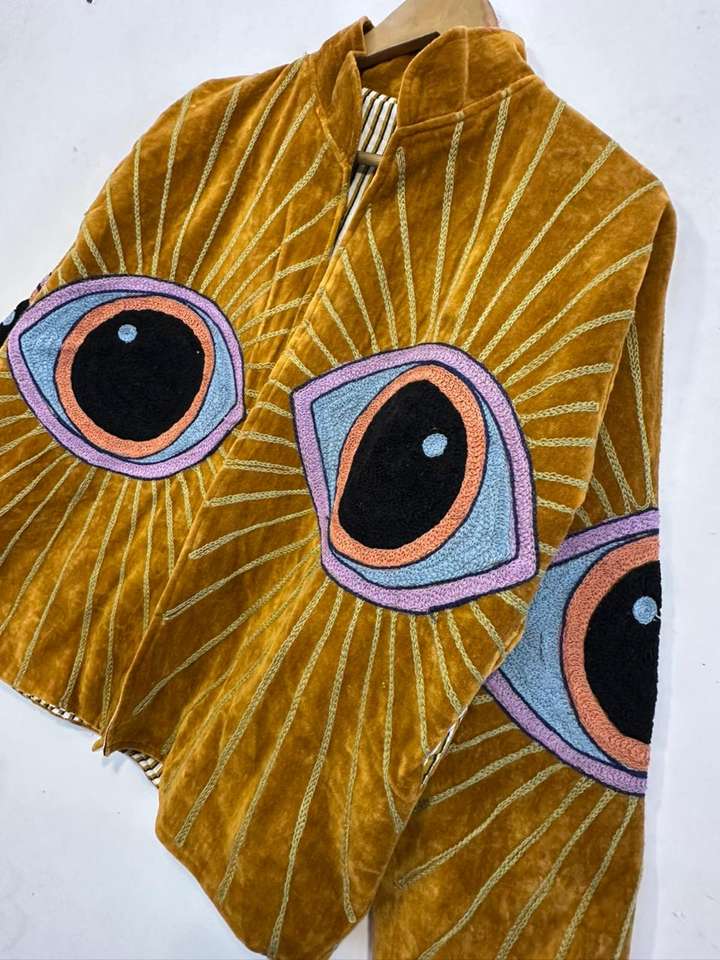 Evil Eye Threads Work Velvet Suzani Jacket For Men And Women's Boho Hippie Style Handmade Embroidery Work Partywear Jacket