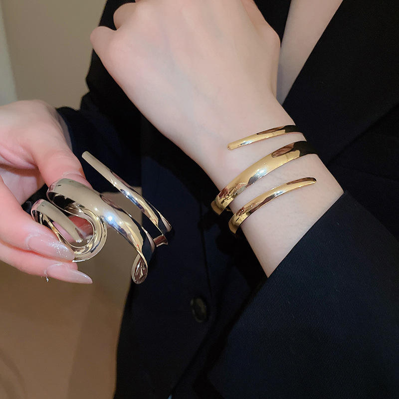 Exaggerated Fashionable Wristband Arm Band Copper Hollow Out Adjustable Bracelet and Open Rings for Women