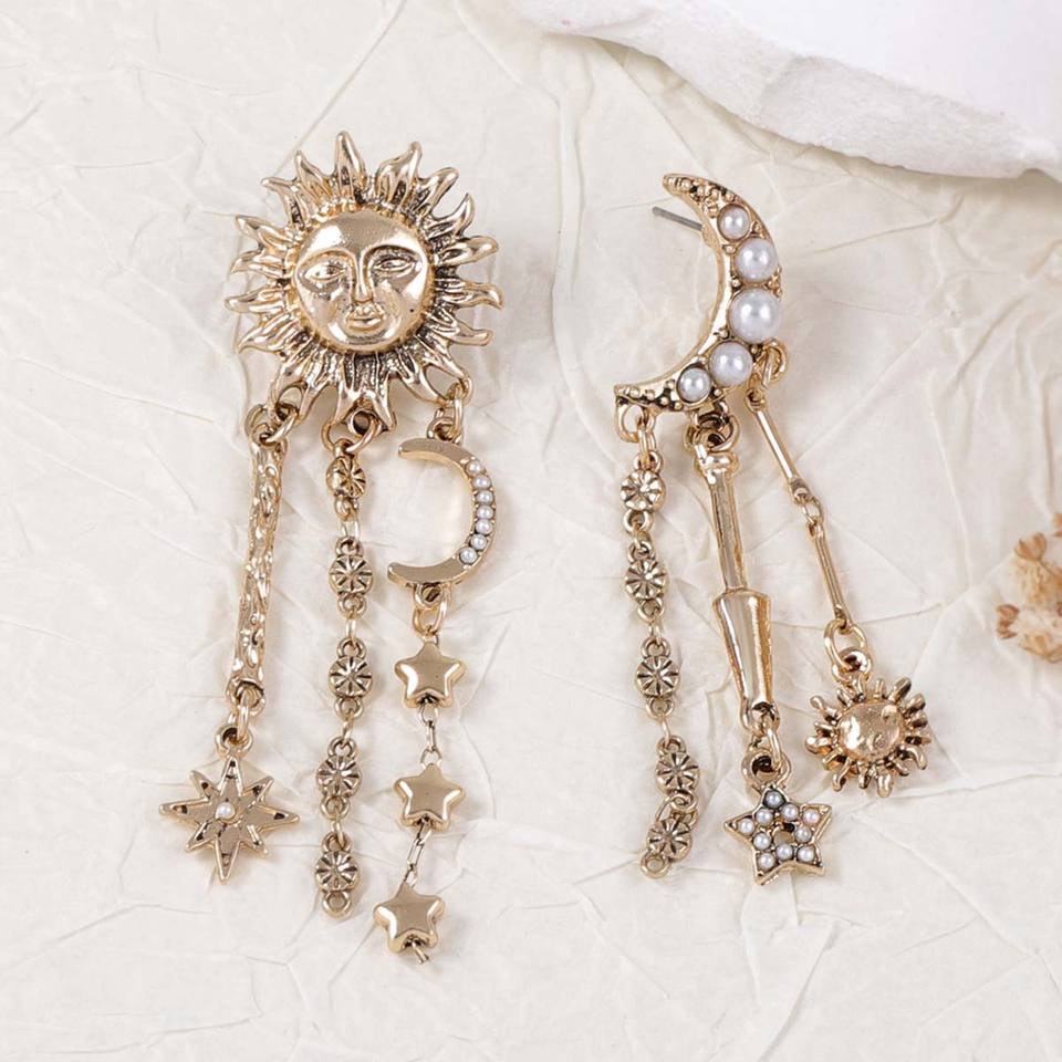 Exaggerated Sun Moon Star Tassel Pendant Earrings Creative Geometric Universe Planet Female Earrings