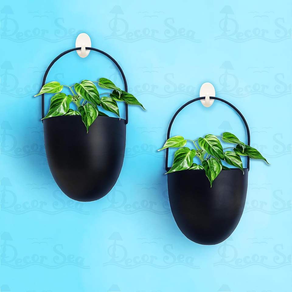 Elegant Design Metal Mini Planter Pots With Golden Color Stand Blue Enameled Printed Design for House Balcony Decoration Pots