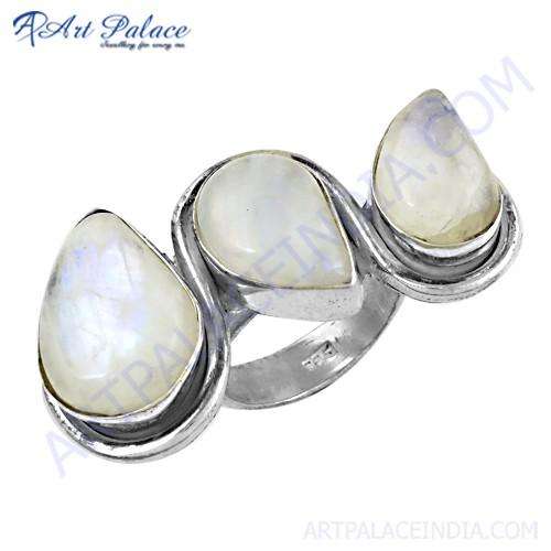 Excellent New Fashionable Silver Ring with Rainbow Moonstone Fine Jewelry