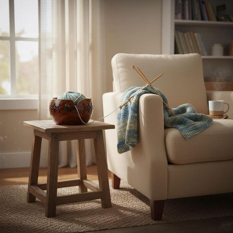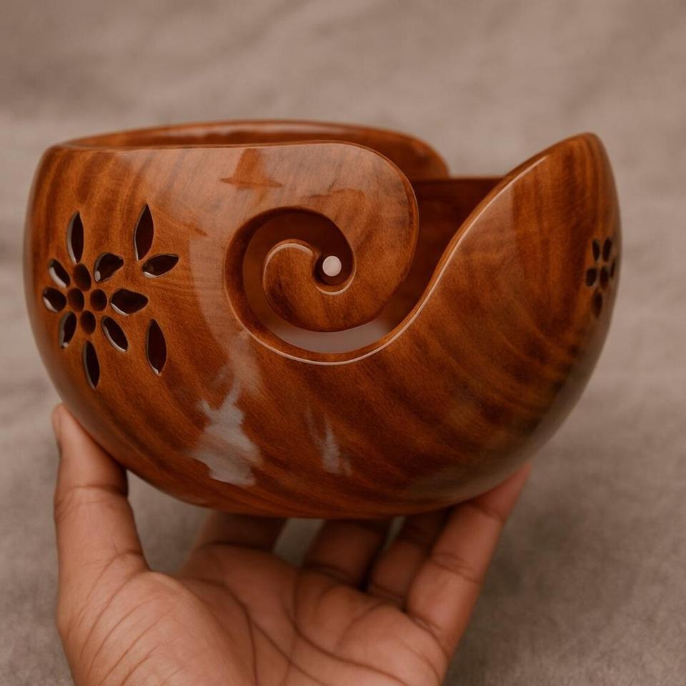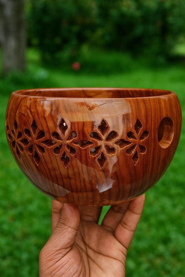 Excellent Quality Acacia Wood Yarn Bowl with Curved Yarn Feed for Knitting Available at Affordable Price from India