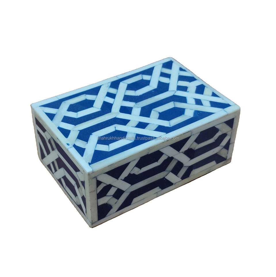 Excellent Quality Bone Inlay Box Navy Blue Spider Pattern Jewelry Box for Rings or Earrings Use Available for Worldwide Supply