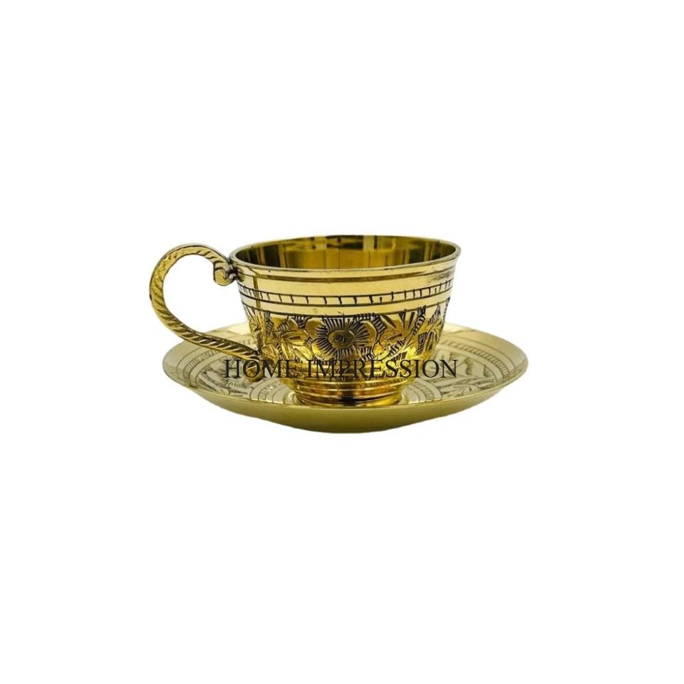 Excellent Quality Brass Made With Most Attractive Designer Modern Creative Art Gold Plated Tea Cup & Saucer Supplies From India
