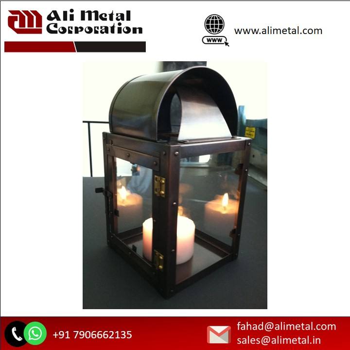 Excellent Quality Customizable Vintage Hexagon Shaped Lantern Wood Metal Top with Long-Lasting Finish for Christmas Decorations