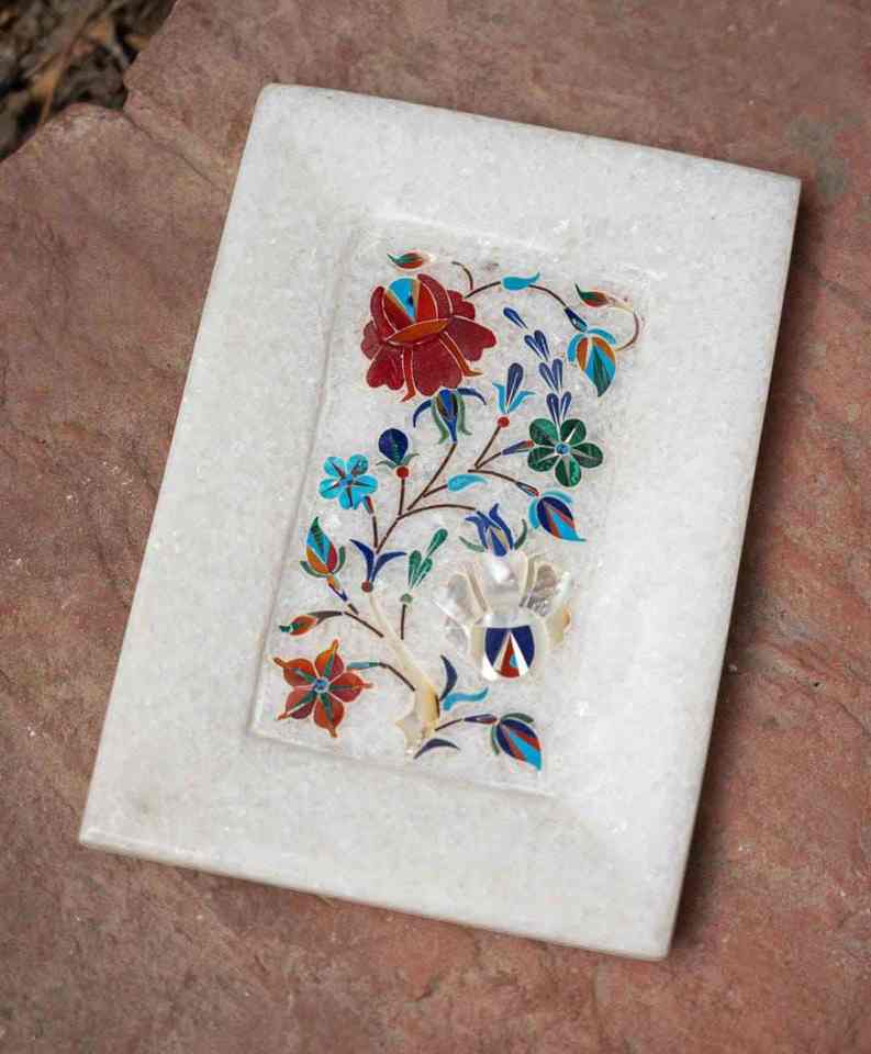 Excellent Quality Designer Marble Inlay Stone Ashtray Handmade Floral Art Judaism Style Premium Interior Art Collectible Best