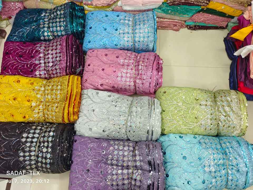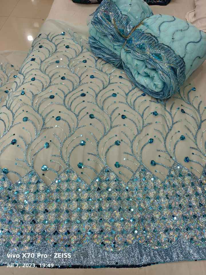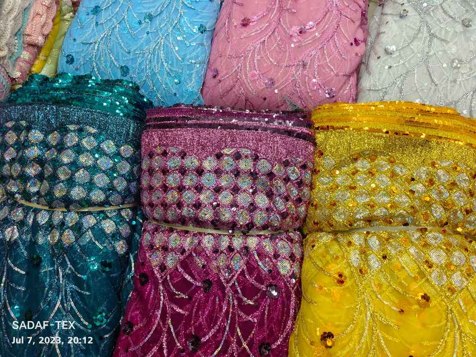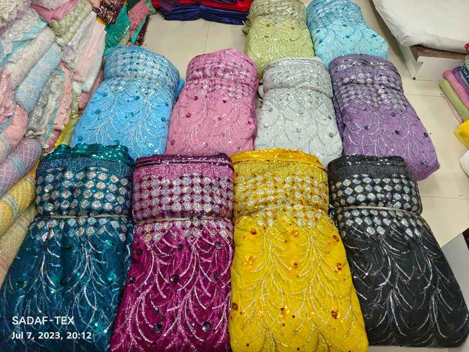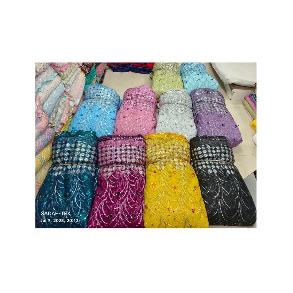 Excellent Quality Embroidery Sequence Border Net Fabric for Party and Wedding Dress Making From Indian Supplier
