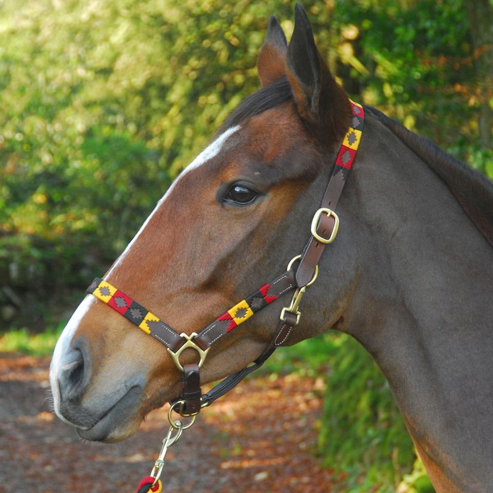 Excellent Quality - German Flag - Traditional Hand Stitched - Polo Leather Horse Halter - Argentinian Cow Harness Leather