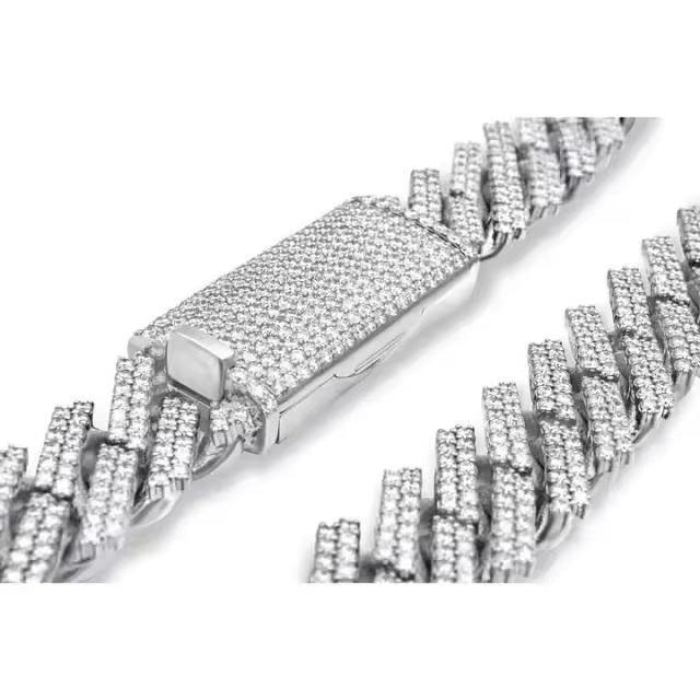 Excellent Quality Luxury Silver Cuban Link Chain Fully Iced D Colour VVS Studded Moissanite Diamond Tester for Weddings for Sale