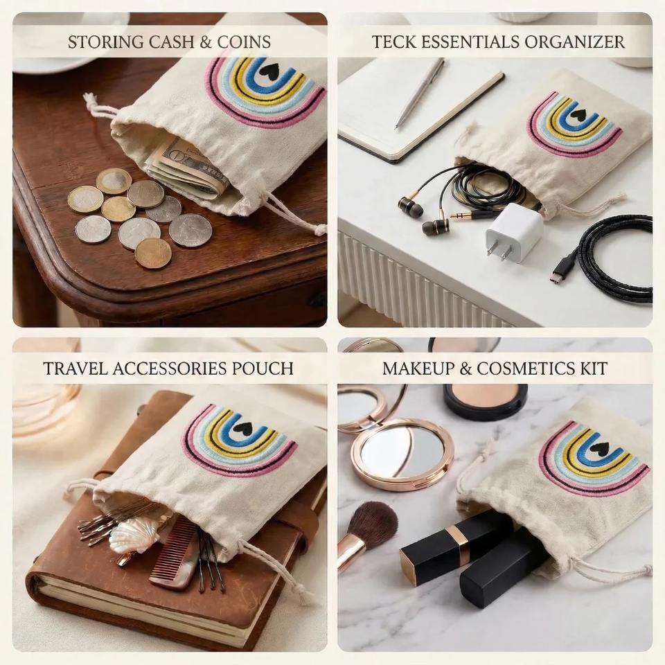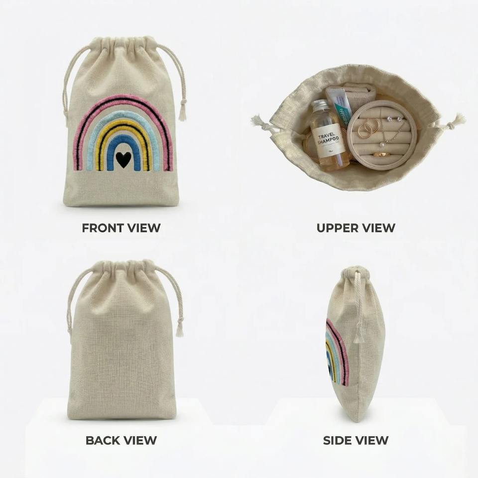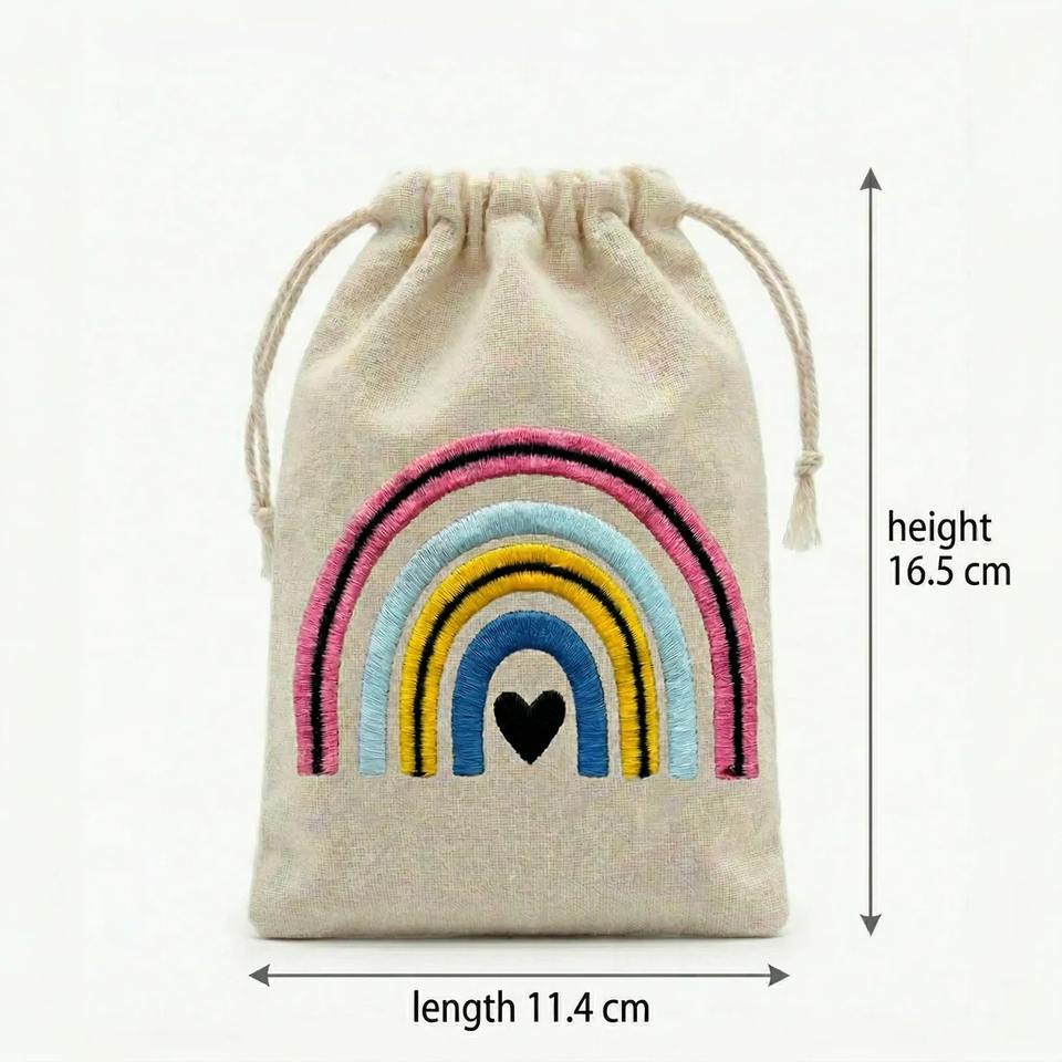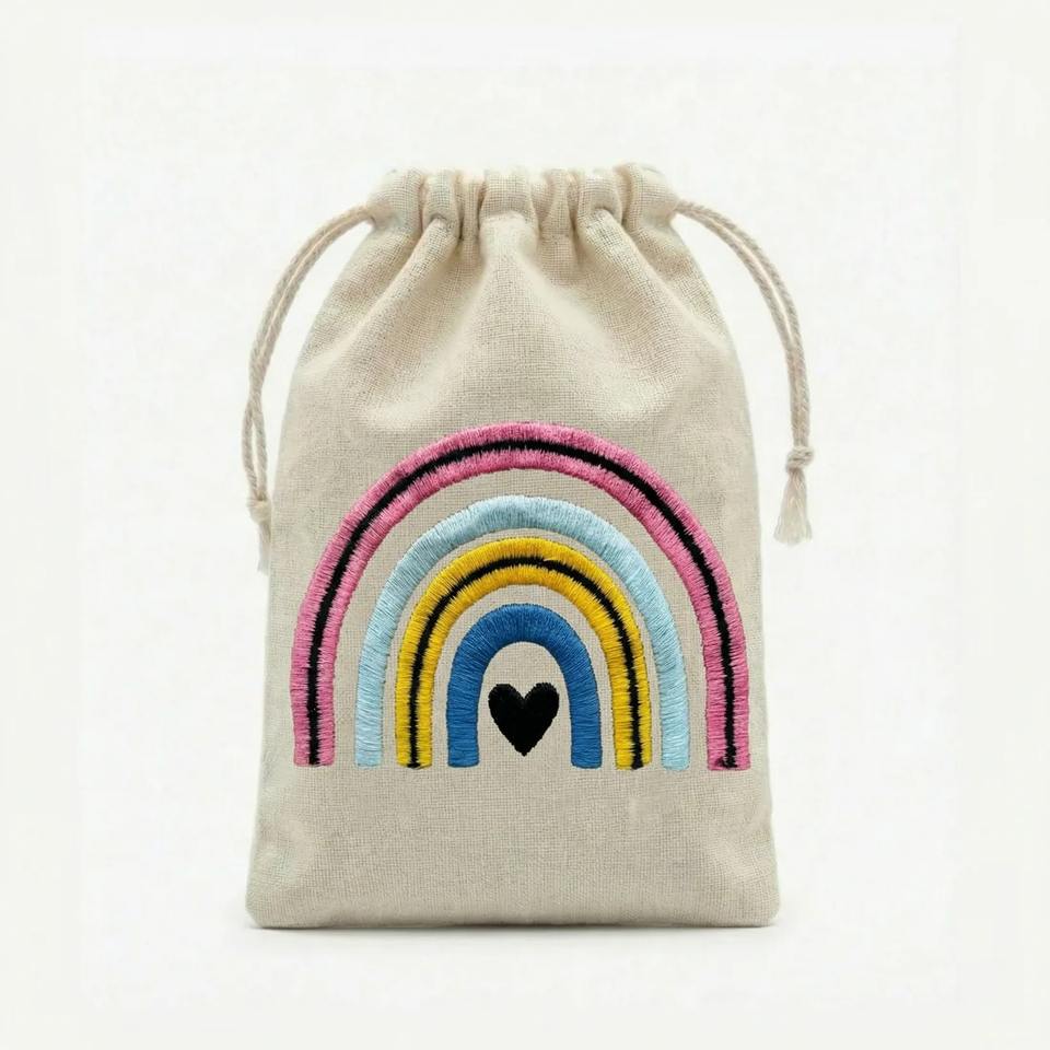 Excellent Quality Rainbow Embroidered Cotton Drawstring Pouch Bag For Jewelry Storage And Gift Use Available In Bulk Quantity