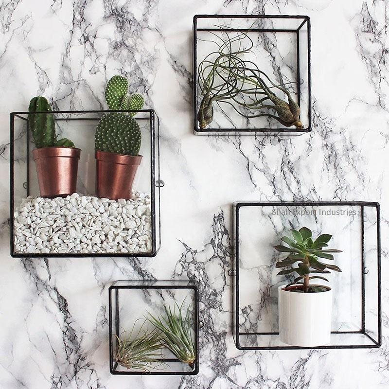 Excellent Quality Wall Hanging Shadow box Display Cabinet Metal Gold Frame Glass Box Planter Box Wall Mounted Display Shelf