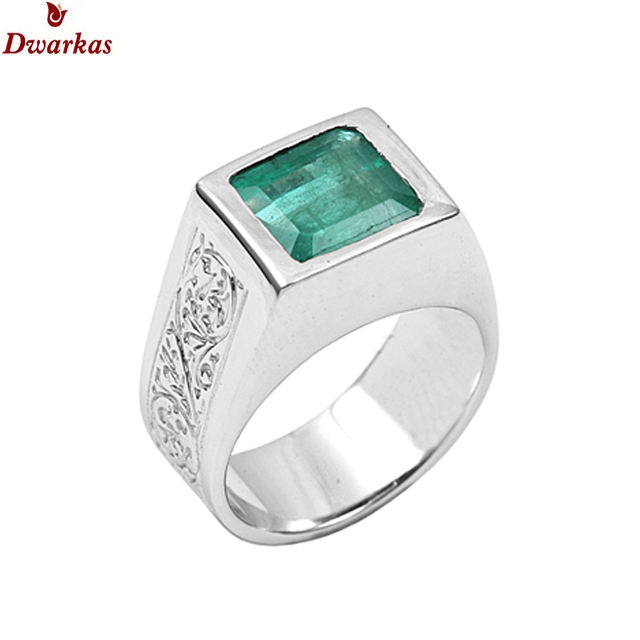 Excellent quality fashion jewellery 925 sterling silver emerald gemstone texture rings for women wedding parties gift