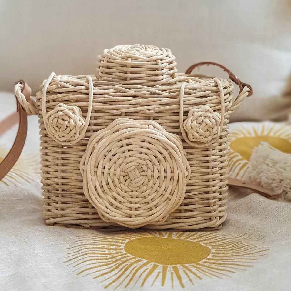 Excellent Quality Kids Gift Mini Bags for Birthday Party Natural Handmade Rattan Camera Toy Bag Basket