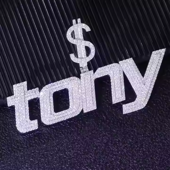 Exclusive 925 Silver 3 Inch Moissanite Diamond Custom Name Pendant Necklace Hip Hop Personalized Iced Gold Plated Trendy Unisex