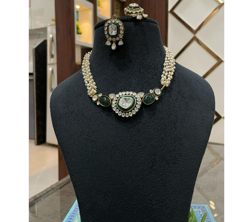Exclusive Best Quality Brass Gold Plated Moissanite Stones Look Necklace Set with Earrings Wedding & Party Wear Collection Women
