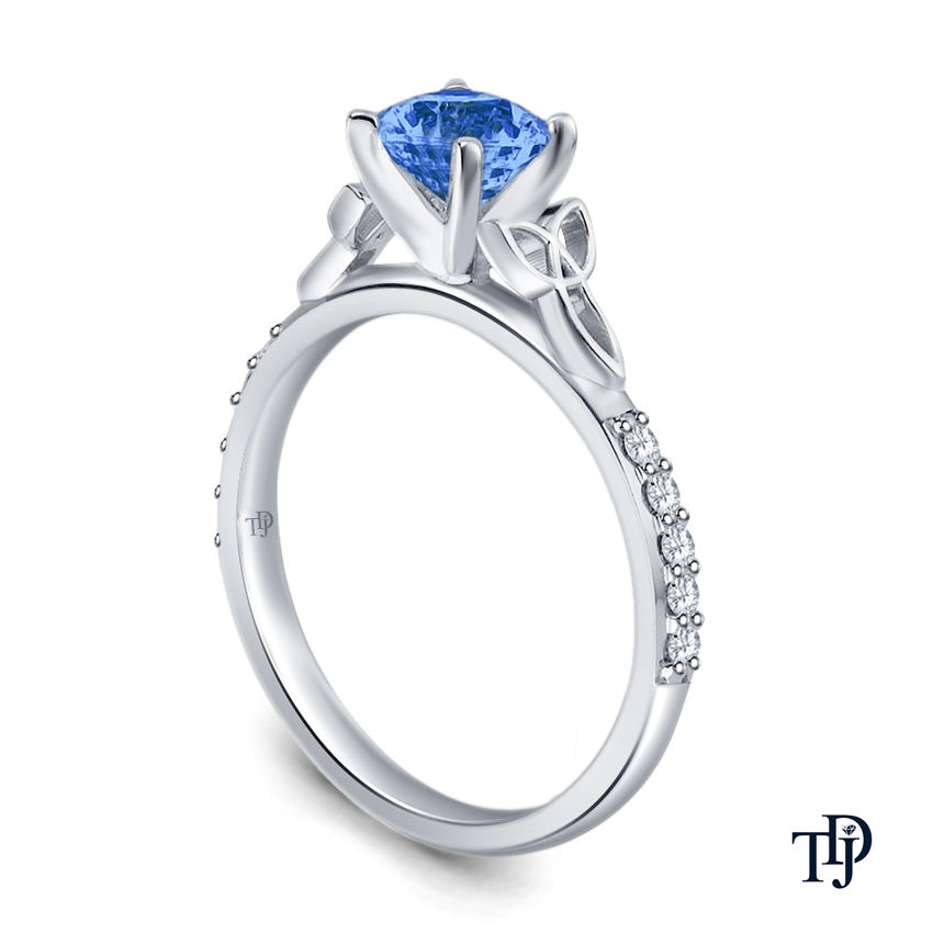 14K Gold Exclusive Blue Sapphire Engagement Ring With Love Knot Side Accent Design
