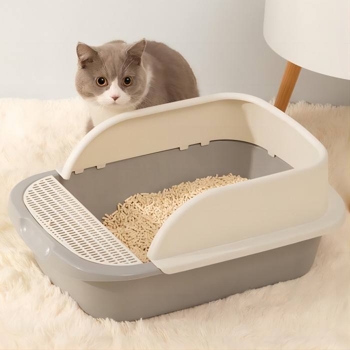 Exclusive PP Cat Litter Box Semi-closed Oversized Anti-sand Anti-splash Odor Isolation Environmentally Friendly Kitten Toilet