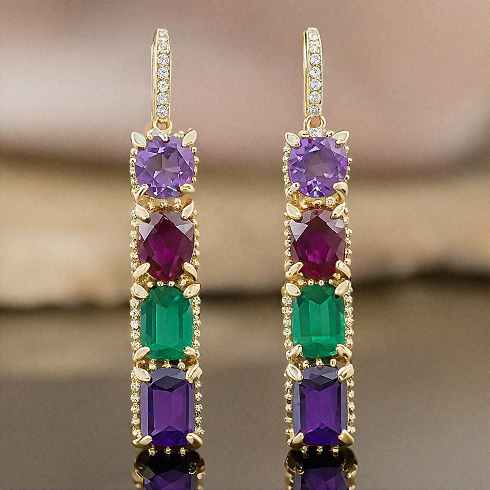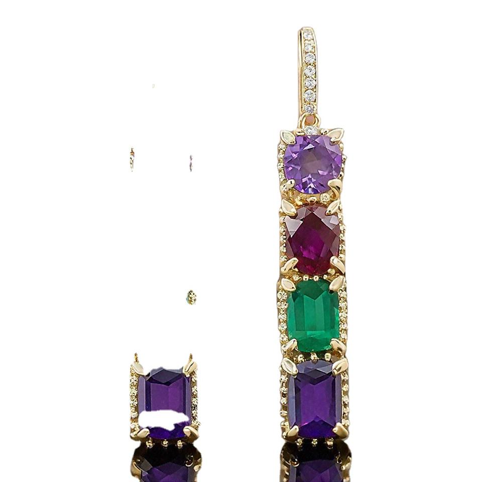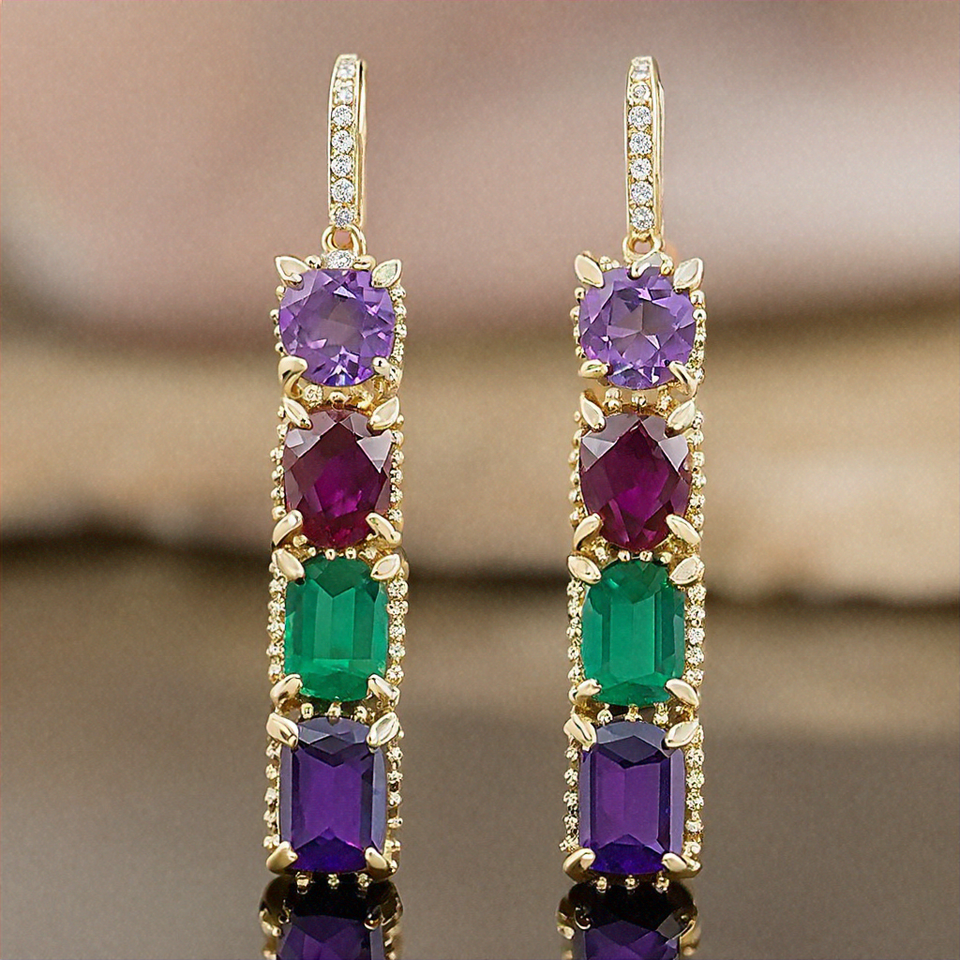 Exclusive Custom 925 Sterling Silver Drop Earrings for Women Pink Tourmaline & Hydro Green Onyx Design Fashion Jewelry